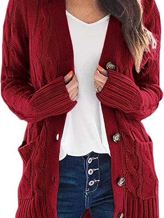Varm Dame Cardigan med Knapper og Kabelstrik