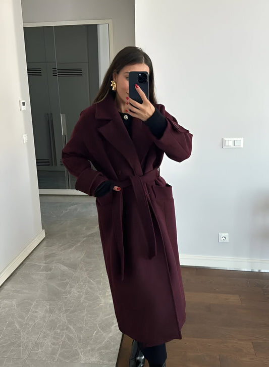 Elegant Lang Vinrød Frakke til Kvinder
